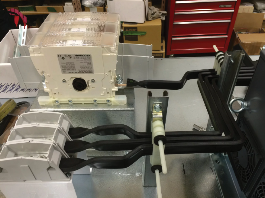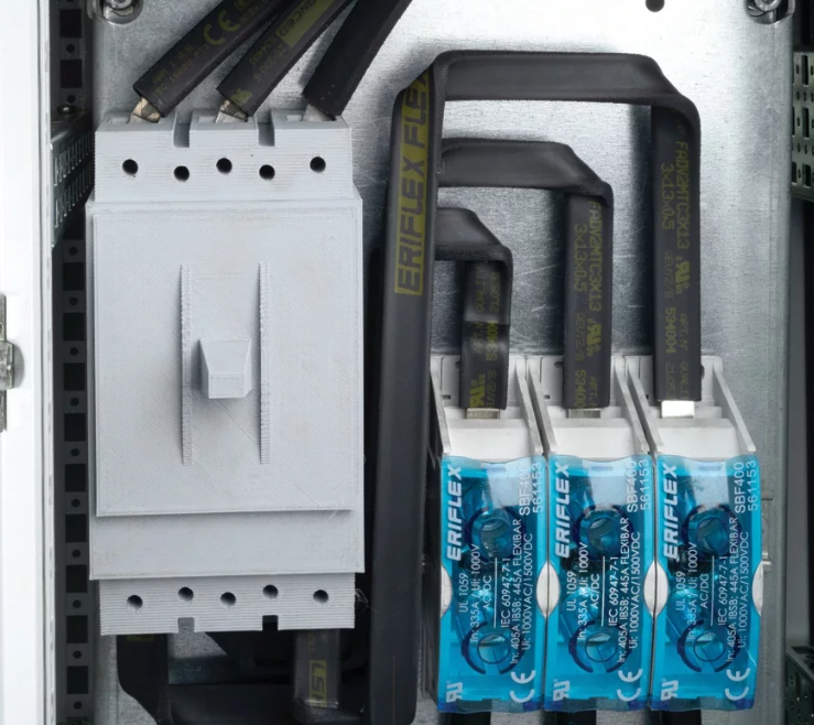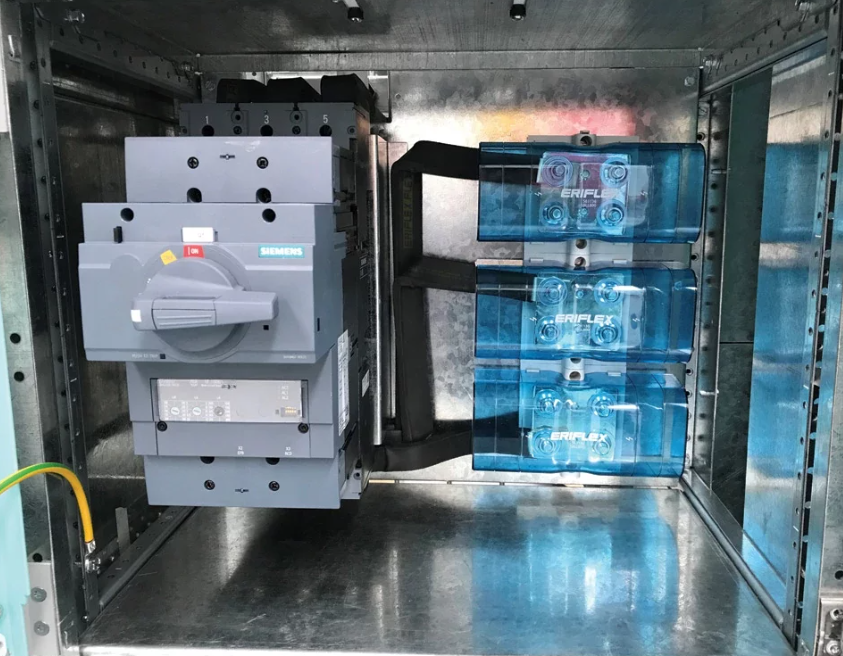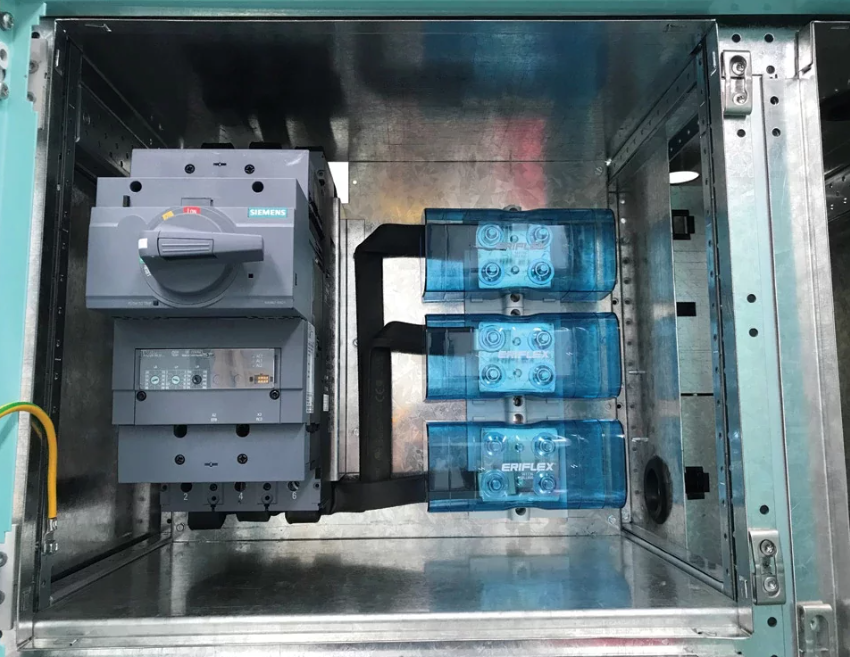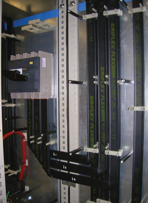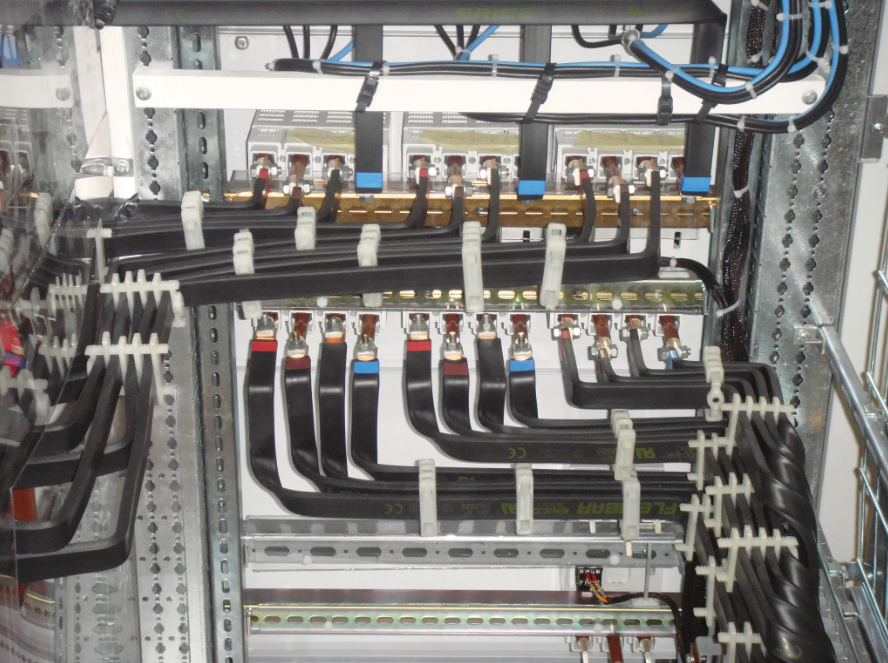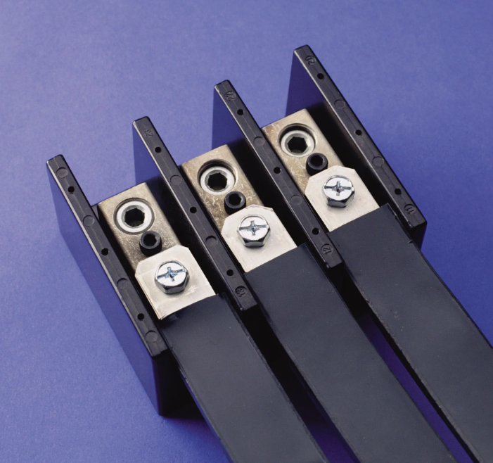 - Các kết nối được thực hiện bằng cách đục lỗ và bắt vít trực tiếp qua các lớp đồng mỏng hoặc kẹp vào phần cuối của thanh mềm nVent ERIFLEX